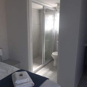 En-suite room with queen bed on the ground floor close to the swimming pool. Bathroom with shower only. Beautiful garden views.